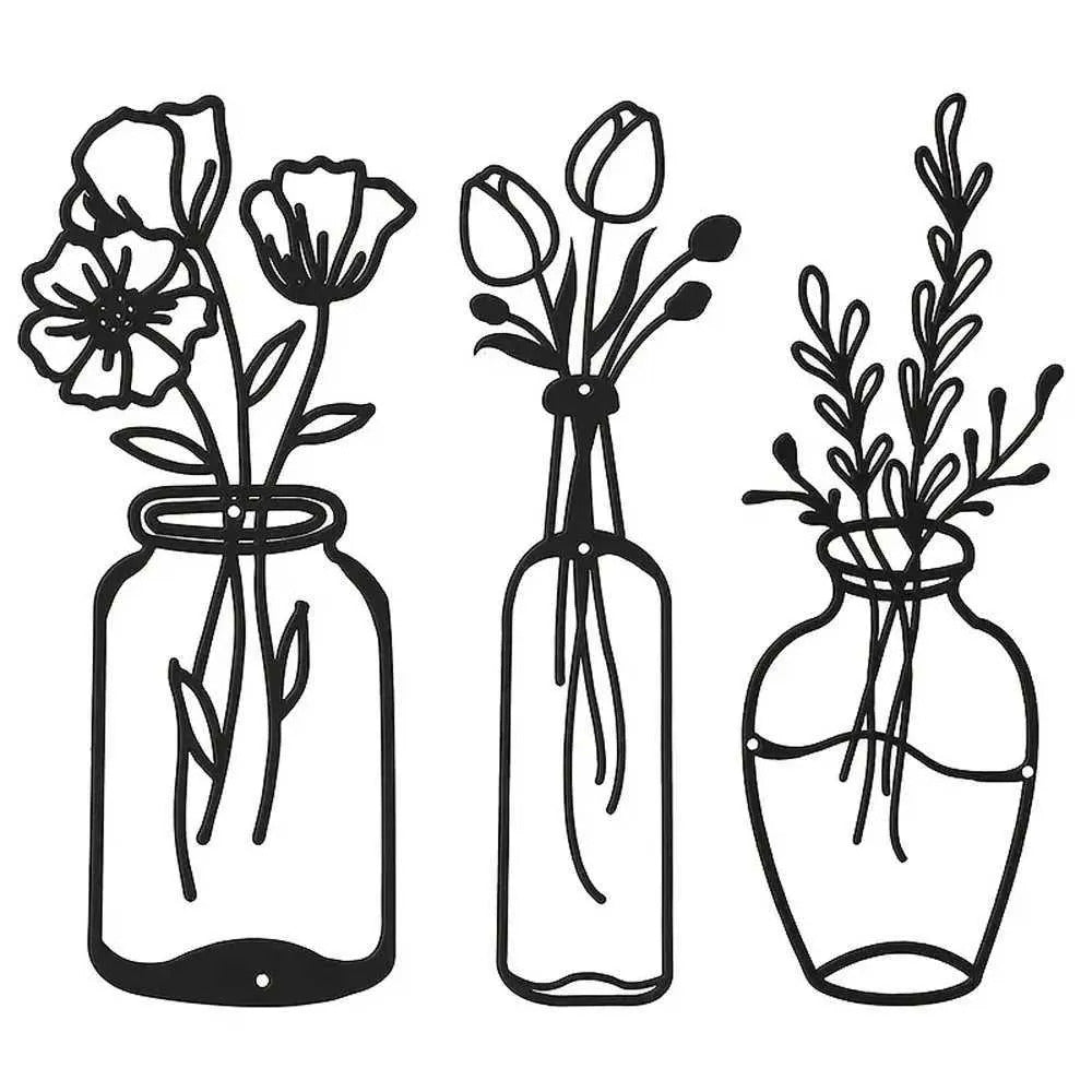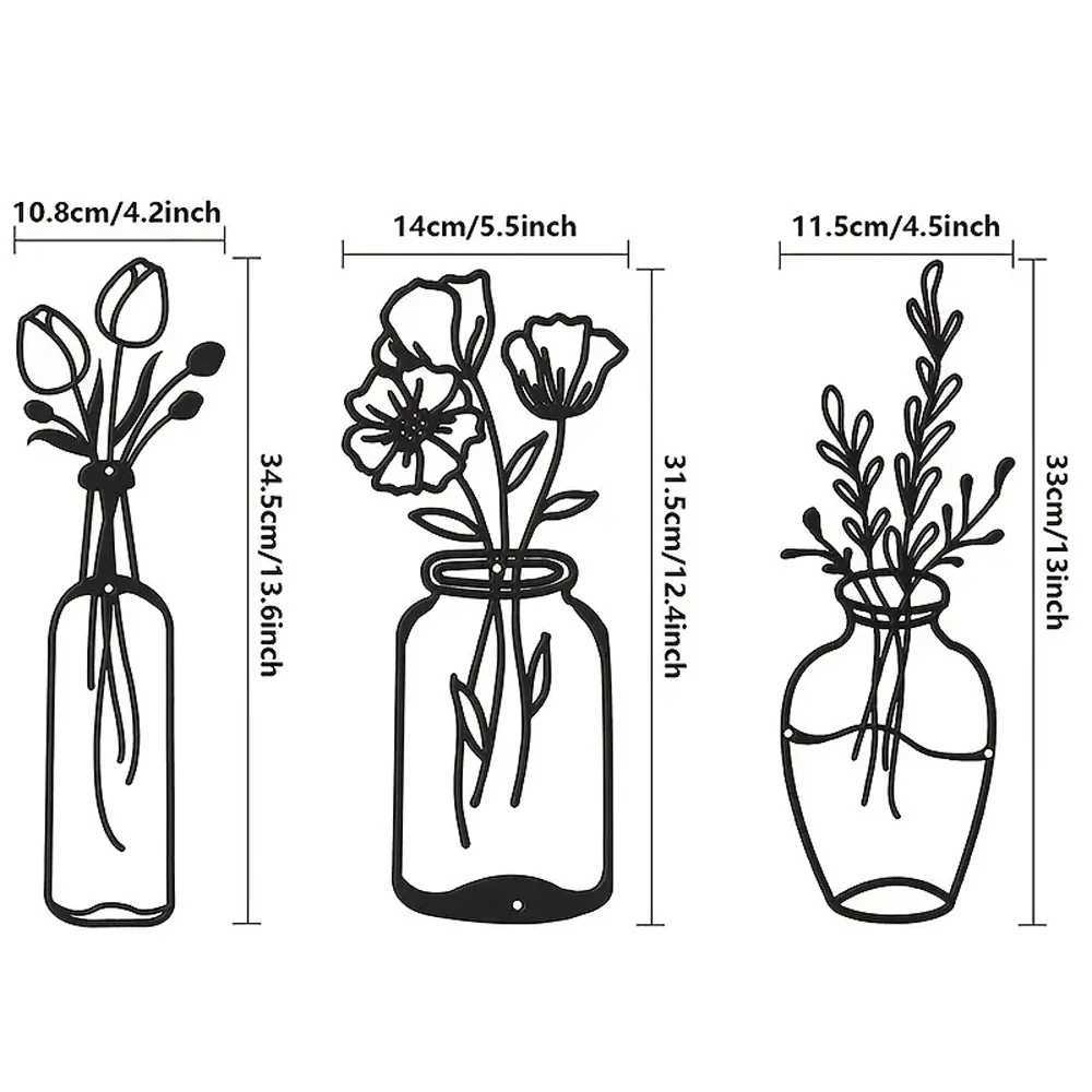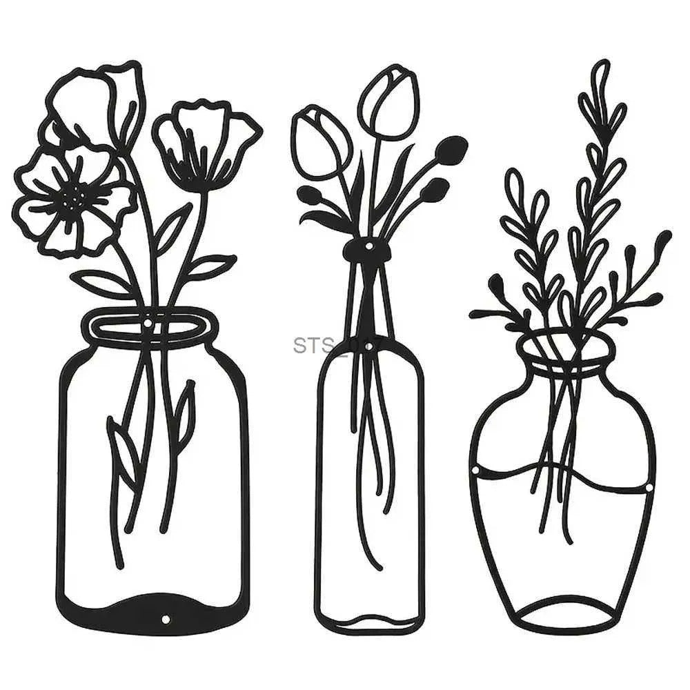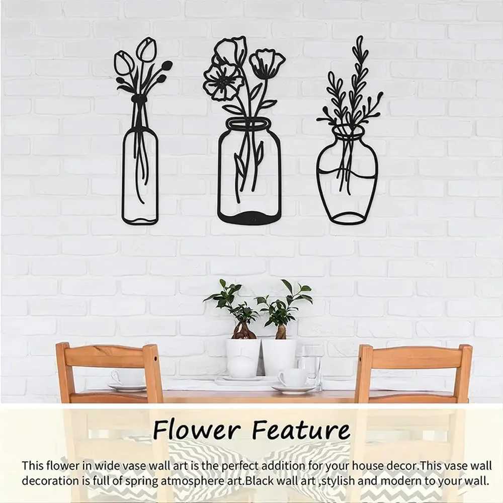 Paintings 3pcs Metal Flower Wall Decor Minimalist Vase Wall Art Black Tulip Wire Iron Decor
